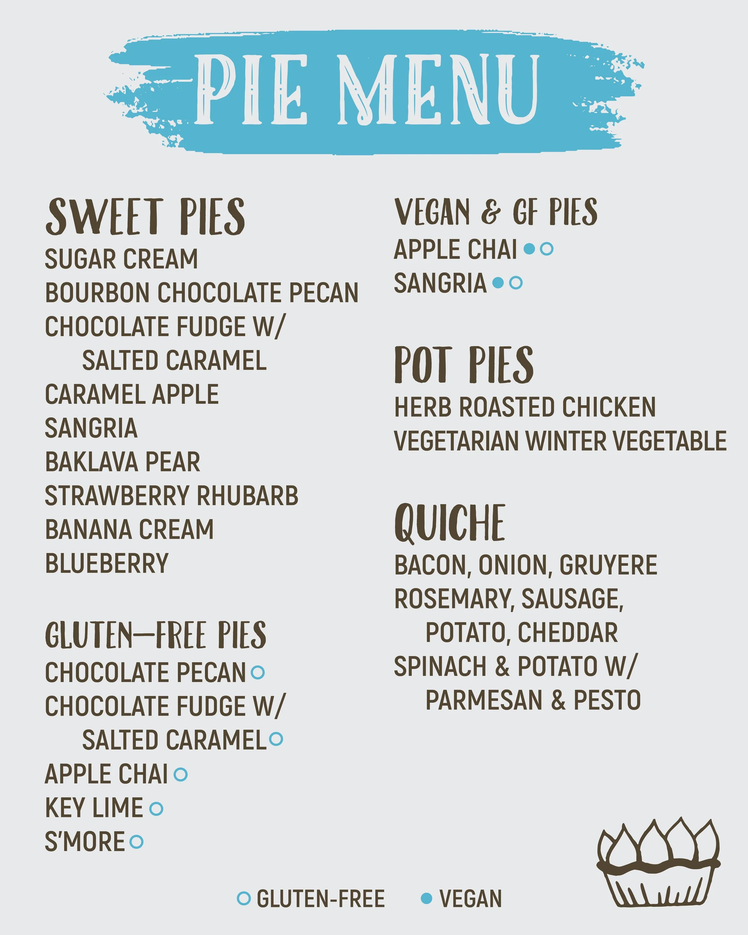 Our savory pies are made-from-scratch with fresh ingredients to satisfy anyone’s pie craving. Gluten and dairy-free options are available.