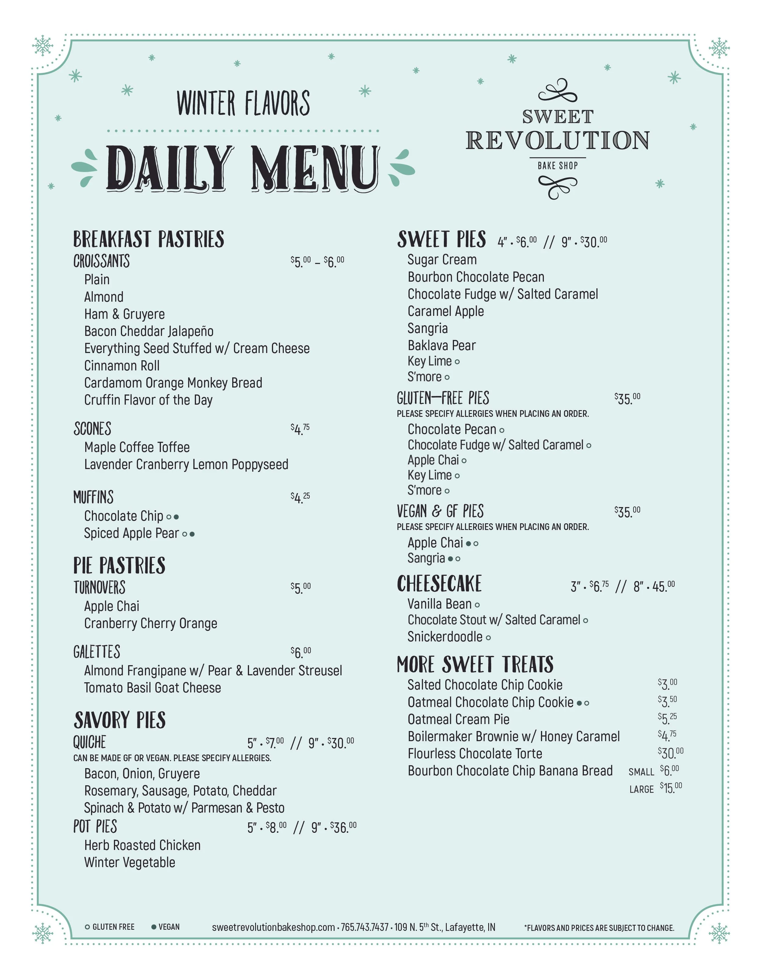 From savory to sweet, we’ve got you covered! There’s something for you every day of the week. Sweet Revolution offers a unique variety of pies and pastries that change on a daily basis. Stop by and ask what the daily special is!